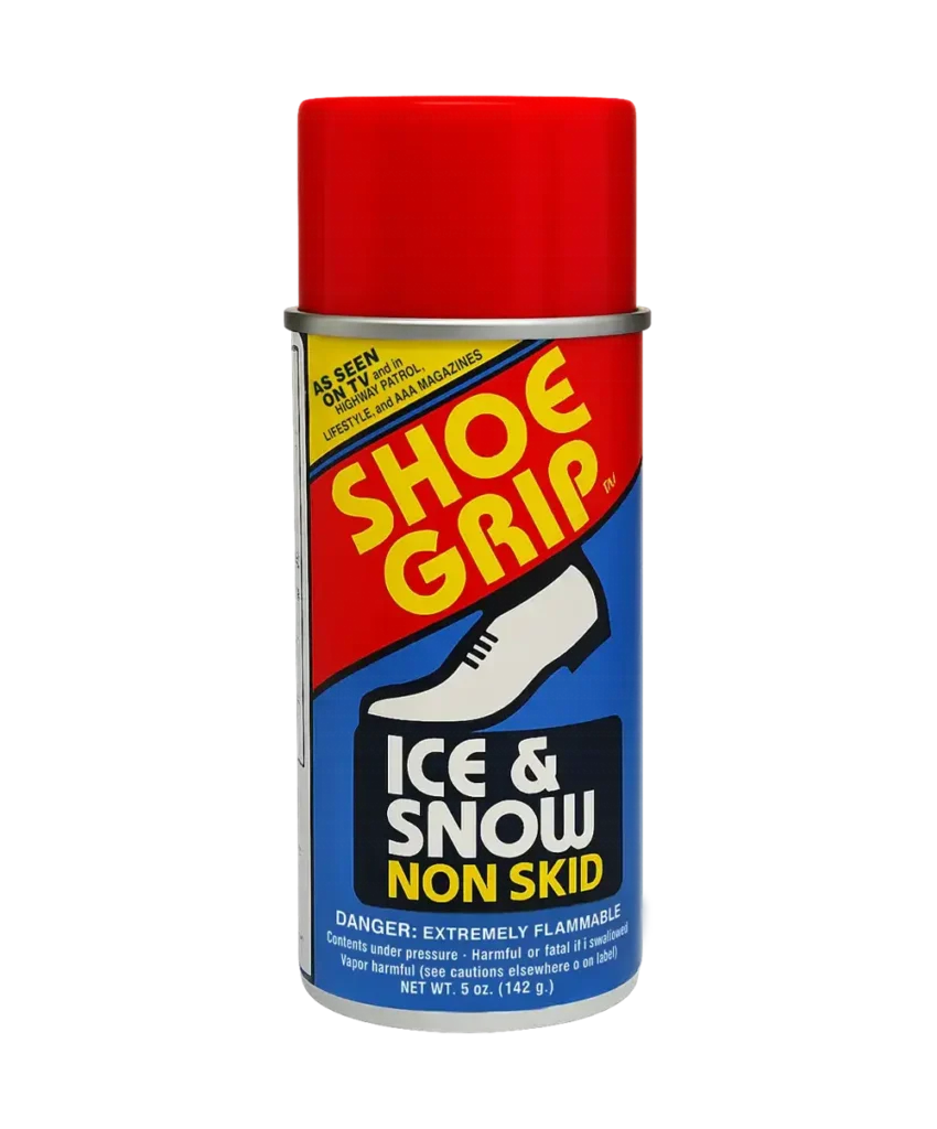 Shoe-Grip™ is a spray-on traction aid designed for footwear, giving shoes and boots better grip on icy sidewalks, snowy driveways, and wet surfaces. It helps reduce the risk of slips and falls in everyday winter situations.